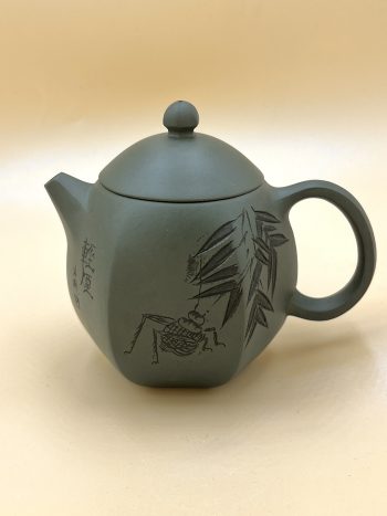 Бамбук – символ стойкости и готовности противостоять испытаниям. Кузнечик – символ удачи, способности двигаться вперед без страха и сомнения. Также у чайника 6 граней, а число 6 в Китае считается символом небесной удачи.
