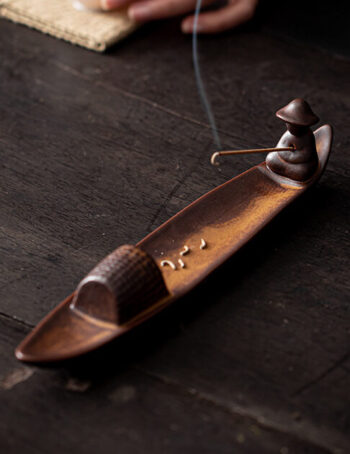 Увесистая 190 гр. керамическая подставка для благовоний-палочек. Имеет 2 отверстия – для тонких и коротких японских и китайских благовоний, и для длинных индийских на деревянной основе. Подойдёт даже для самых длинных палочек.
