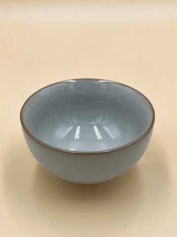 Небольшая пиала пыльно-голубого оттенка, вес 100 гр., средняя толщина стенки, объем 80 мл., рабочий объём 60 мл.