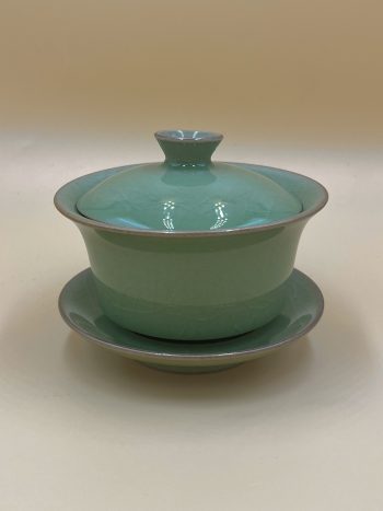 Классическая гайвань с блюдцем Императорской керамики Лунцуань. Изумрудный оттенок, градиент цвета и кракле на глазури.