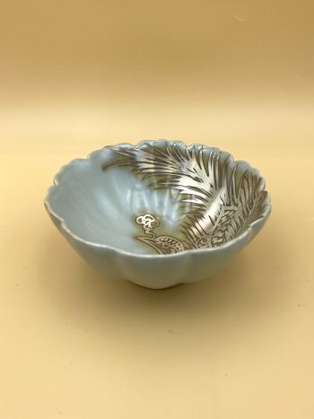 Ручная роспись Феникса серебром на лепестках пиалы .