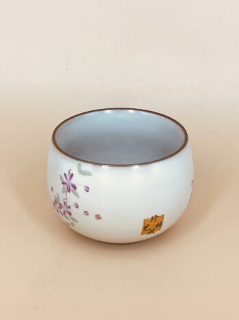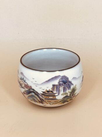 Пиала необычной элегантной формы “лодочка”, ярко расскрывает аромат. Средняя толщина стенки забирает избыточную температуру чая, сохраняя настой тёплым и удерживая аромат. Покрытие Жу Яо (с трещинками на глазури) со временем заполняется чайным пигментом и появляется ярче, нарабатывая индивидуальную фактуру рисунка.