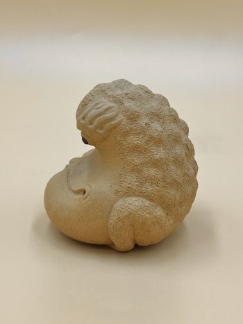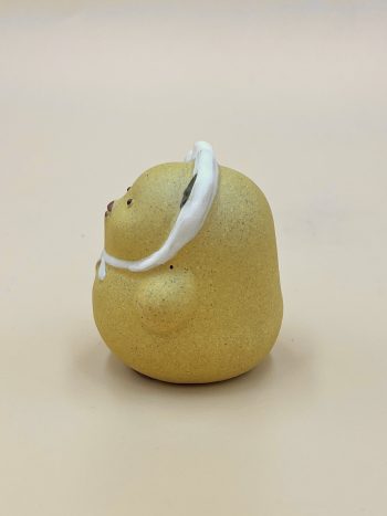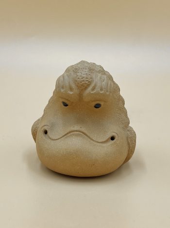 Детализированная чайная фигурка из исинской глины. Бархатная шероховатая текстура, природный серый оттенок глины с крупными фракциями желтых вкраплений.
