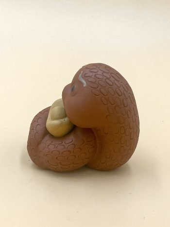 Фигурка среднего размера 6 на 5 см., весом 113 гр. Сделан из исинской глины кирпично-красного оттенка с песчаными вкраплениями жёлтого цвета, детали и текстура шкурки вручную проработаны.