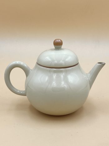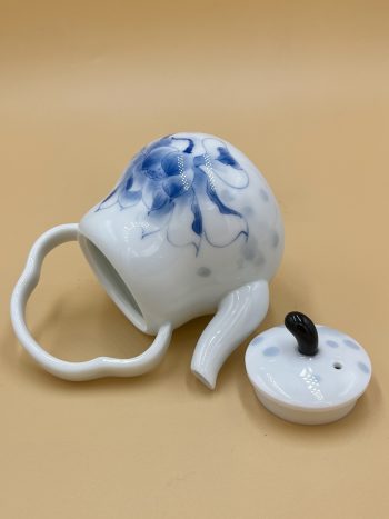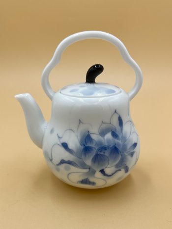 Классический керамический чайник из Дэхуа формы Груша с глянцевой глазурью внутри и снаружи. Украшен ручной подглазурной росписью цветами Глицинии.