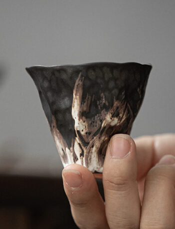 Тяжеловесная 140 гр., глянцевая пиала с матовой полу-прозрачной текстурой, очень толстой стенкой. Полный объем 60 мл., рабочий объем 50 мл.