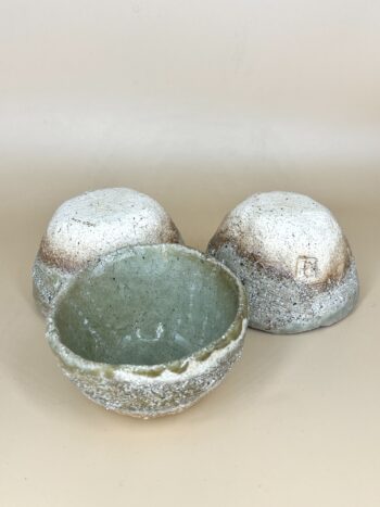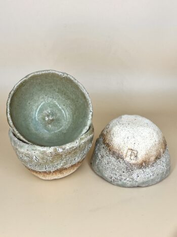 Высокотемпературный обжиг, фарфоровый камень в составе глины, матовая текстурная глазурь в японском стиле снаружи.