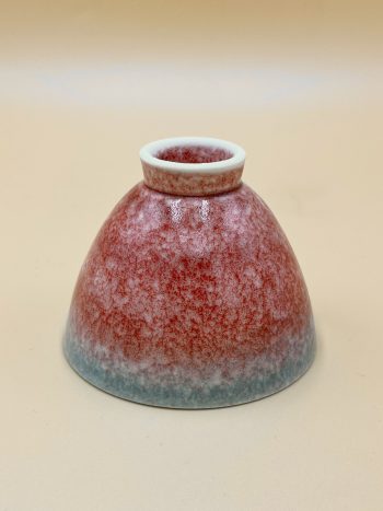Глазурированная пиала керамики Цзиндечжень, тяжеловесная и устойчивая. Глазурь от пиалы к пиале имеет разный рисунок и оттенок. Нежный розовый цвет с салатово-коричневыми пятнами и мелким “ледяным” рисунком кракле.
