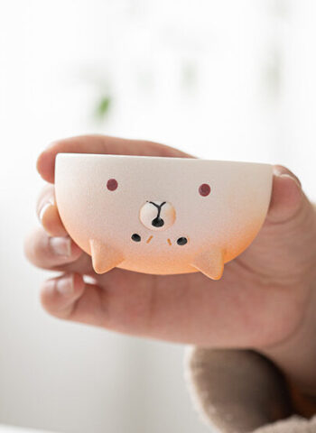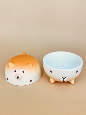 Весёлая пиала со средней толщиной стенки и рельефной матово-бархатной текстурой в виде Сиба-Ину или Акита-Ину.
