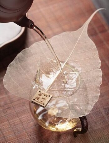 Полностью природный продукт, неповторимой формы от сита к ситу, – лист “Дерева Бодхи”, произрастающего в провинции Юньнань. Лист полностью лишен мякоти, остаются только жилки, которые не пропускают даже самую маленькую чайную пыль.