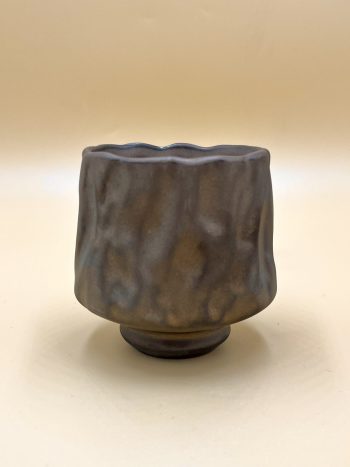 Глянцевая яркая пиала с имитацией оттиска листа клёна на дне. Чёрно-синий оттенок и желтый оттенок сусального золота.