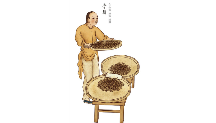Сразу после этого производитель чая использует сита разного размера для просеивания чайных листьев, заставляя чайные листья двигаться по ситу круговыми движениями, и разделяет чайные листья на несколько частей и длин по мере необходимости. При встряхивании сита руку необходимо держать ровно и встряхивать с постоянной скоростью, чтобы отделить чай, стебли или чайный порошок, который не соответствует характеристикам сита. После наклона материал будет удален и чай станет качественным. не будут отсеяны.